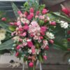 Este trípode funerario es como un poema hecho de flores: vibrante, emotivo y lleno de significado. Las rosas rojas simbolizan el amor incondicional y la pasión que esa persona despertaba; los liliums blancos, la pureza y la paz eterna; las hortensias blancas, la belleza pura y la memoria viva; y las alstroemerias, la gratitud y el recuerdo duradero. Todo esto envuelto en un follaje verde intenso que da vida y protección.